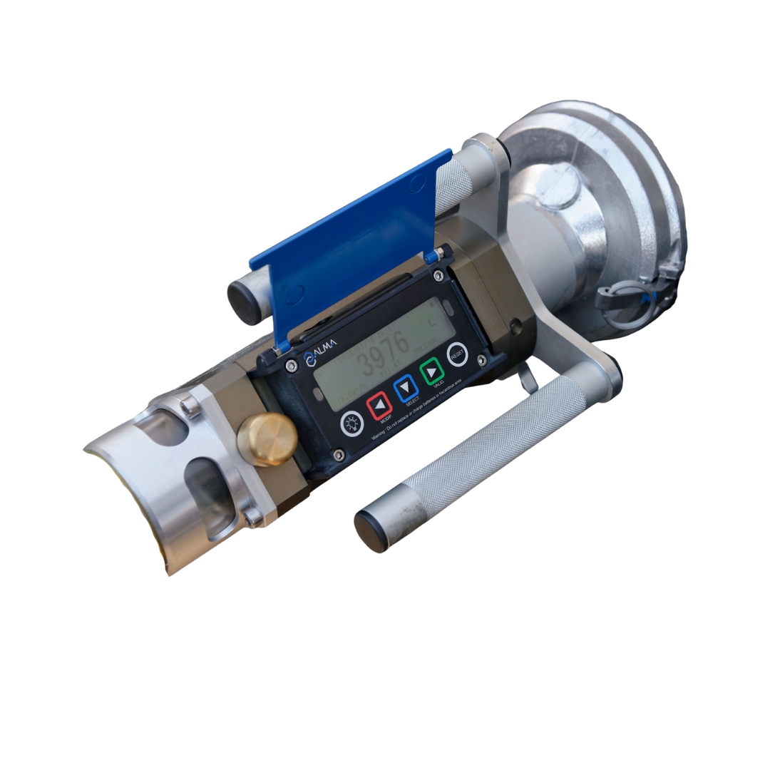 Medidor portátil autónomo FLEXICOMPT ATEX para descargas de combustibles, con Bluetooth y Wi-Fi. Registro de datos y operación en campo en Perú.